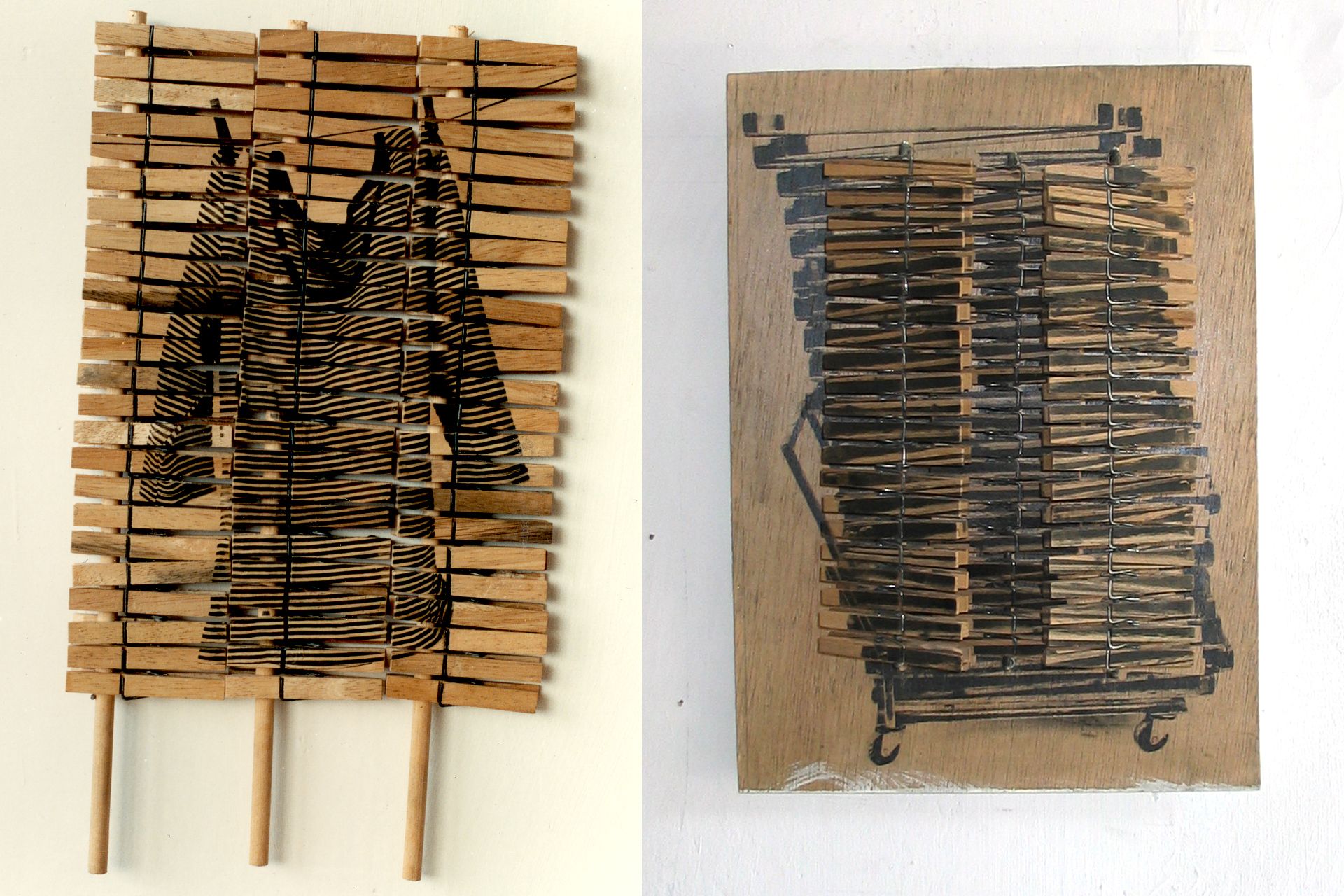 40 x 22,5 x 2 cm (l), 50 x 40x 8cm (r), photographic emulsion on wood and clothespinsphoto credits: ©Ilse Haider