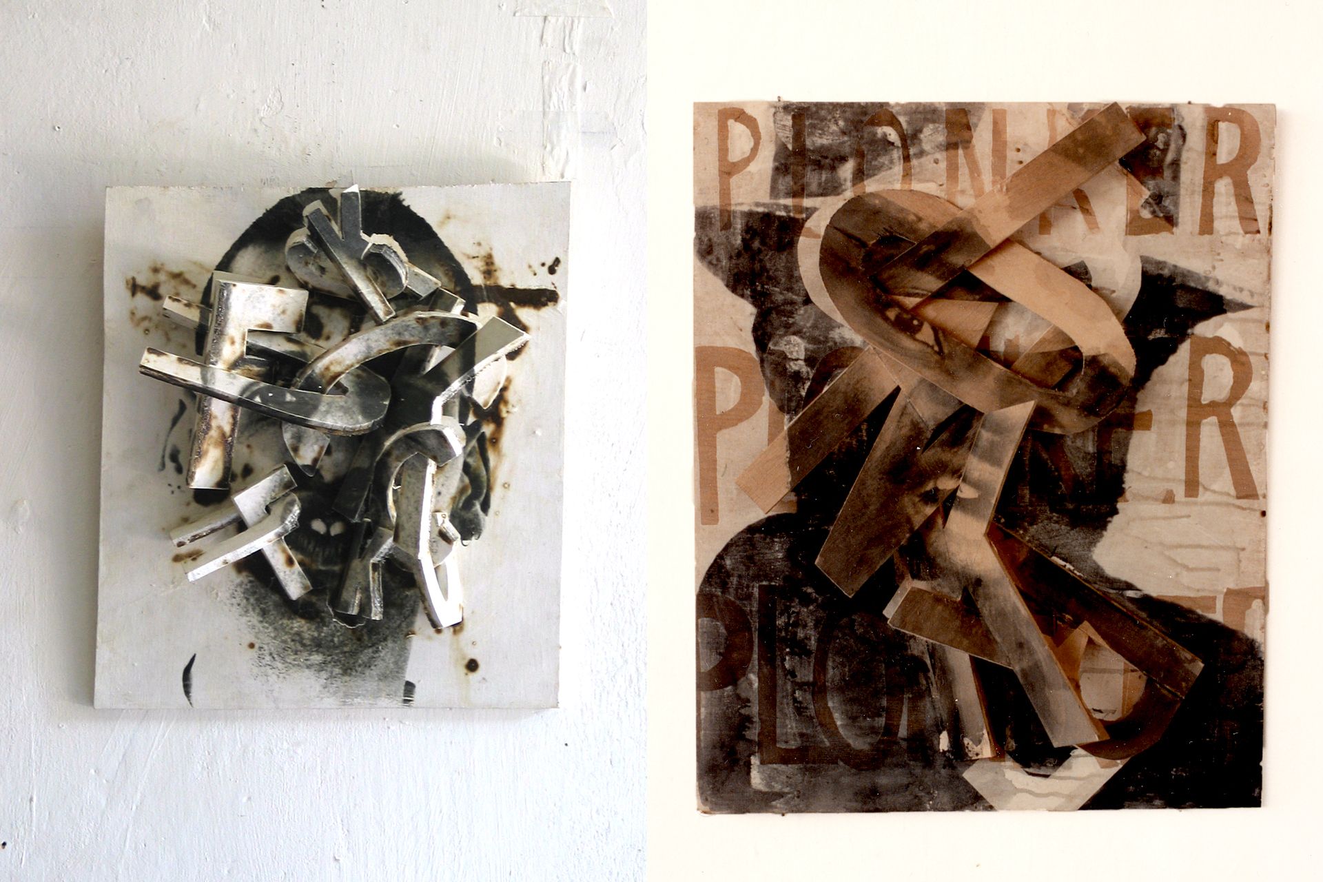 40 x 30 x 10cm (l), 60 x 50 x 4cm (r), photographic emulsion on woodphoto credits: ©Ilse Haider